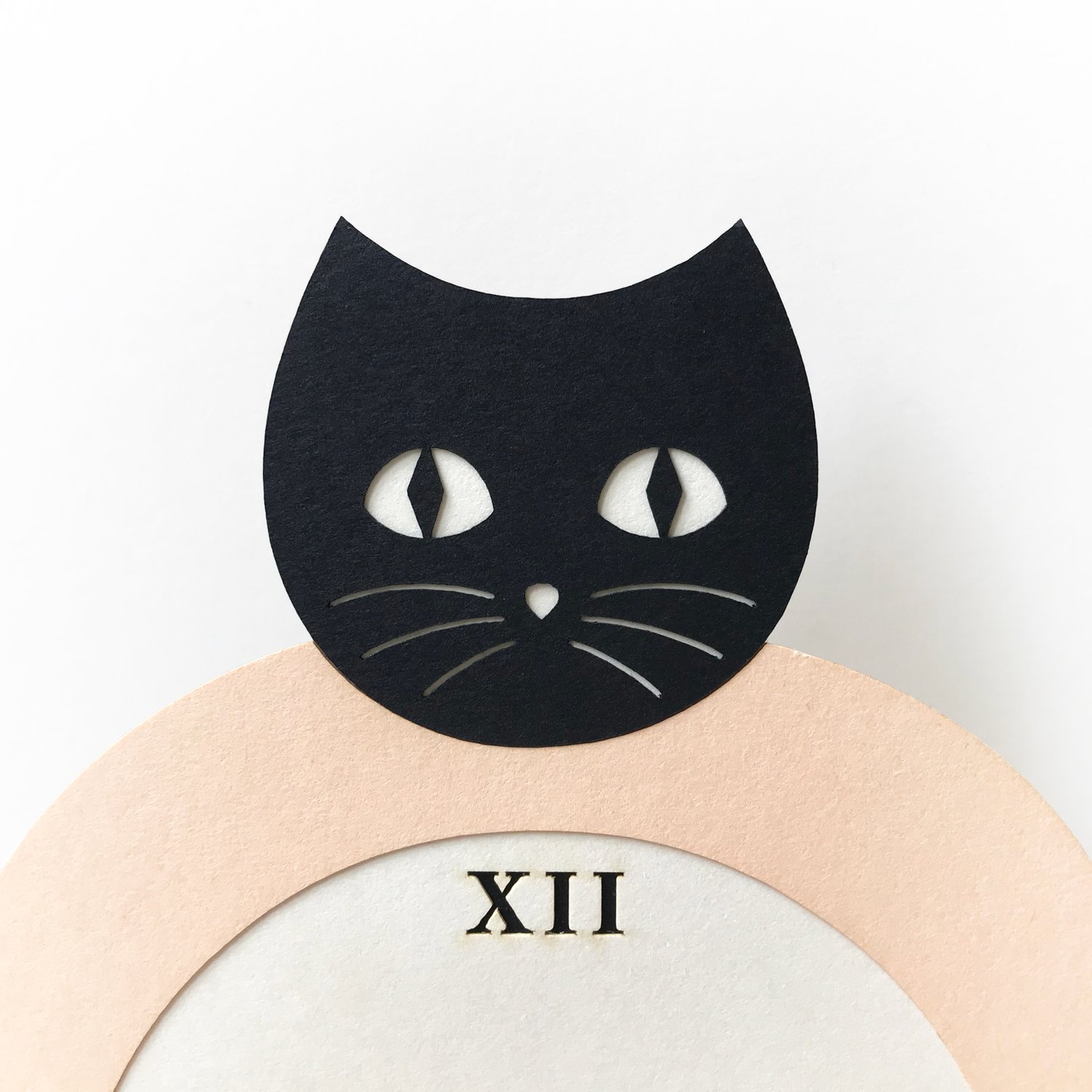 . papier découpé contrecollé sur bois MDF . dimensions : 20x9.5 cm . couleurs : noir, rose pâle, rouge, vert amande . fonctionne avec 1 pile 1.2V . horloge vendue sans pile